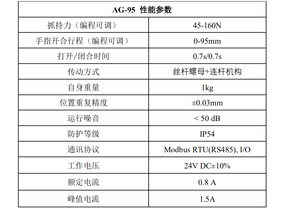 大寰AG-95夾爪性能參數(shù):