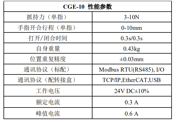 CGE-10 電動夾爪硬件參數: