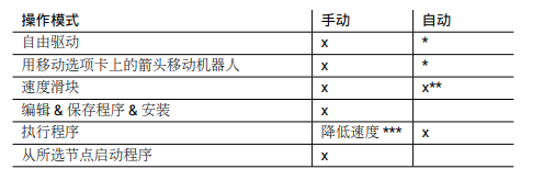 3.當操作模式輸入為低時,機器人處于自動模式,當操作模式輸入為高時,機器人處于手動模式。