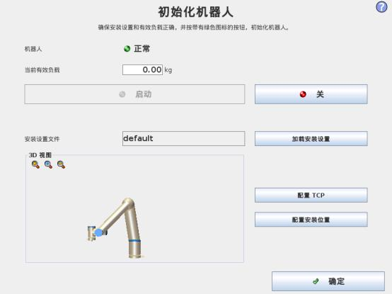 帶綠色圖標的大按鈕是用于對機器人手臂進行實際初始化的。上面的文字,以及其進行的操作,都會根據機器人手臂的當前狀態變化。
