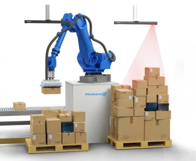 Photoneo3D視覺掃描裝滿箱子的整個托盤,并將掃描傳輸到3D紋理數據集。然后,該掃描由Photoneo的機器學習算法處理,該算法在5000多種盒子上進行訓練。AI立即識別每個盒子并向機器人發送命令。使用專門開發的通用夾持器,機器人執行拾取動作的精度為+-3 mm。這樣,它可以在一小時內卸下1000箱貨物,準確率為99.7%。