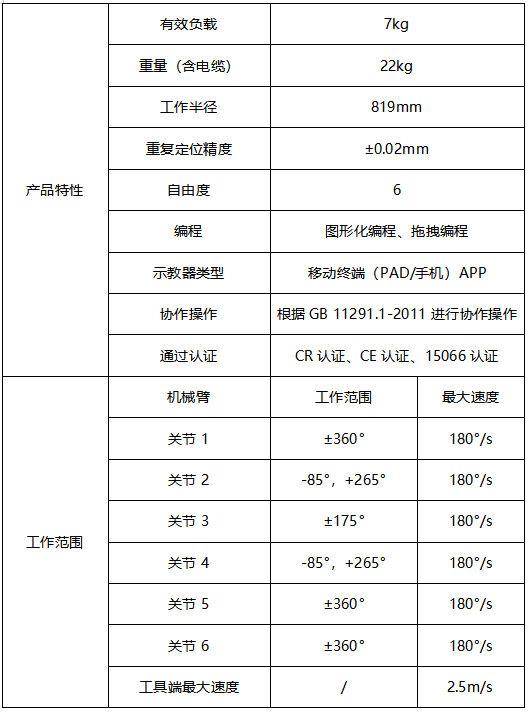 JAKA Zu 7協(xié)作機器人具有以下產(chǎn)品特性: