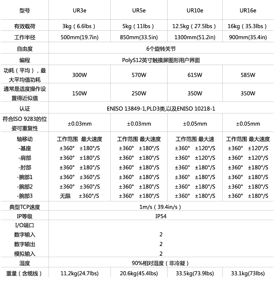 UR16e協作式機器人產品參數: