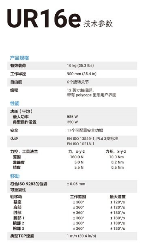 UR16e協(xié)作式機(jī)器人產(chǎn)品參數(shù):