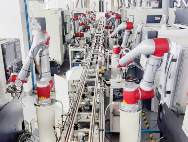 在發(fā)動機齒輪箱裝配中, 節(jié)卡機器人根據(jù)客戶需求及行業(yè)痛點,通過用力控自適應算法實現(xiàn)汽車發(fā)動機中差速器齒輪精密的雙銷軸裝配,裝配間隙小于0.03mm,準確、可靠的定位和裝配,有效地防止工件的損耗和提高勞動生產(chǎn)率的目的;同時將對應的人工裝配工位替換為機器人自動化產(chǎn)線,把人從裝配線中解放出來,降低人工成本,提高產(chǎn)線自動化程度。