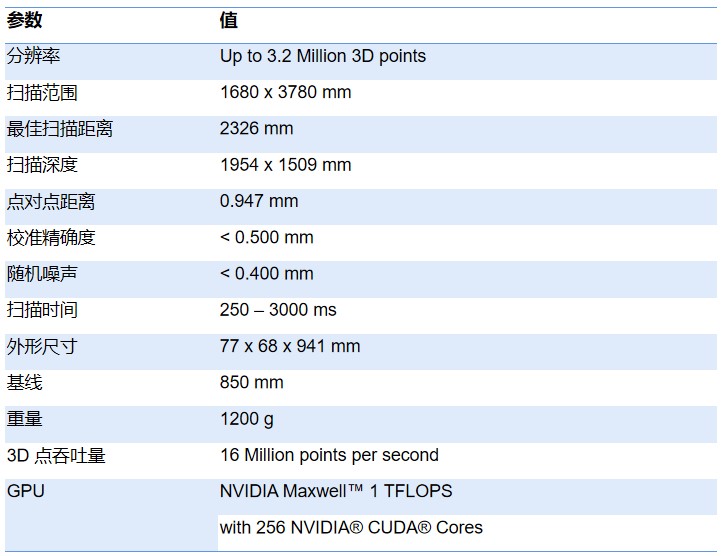 Photoneo PhoXi 3D Scanner XL參數(shù)如下: