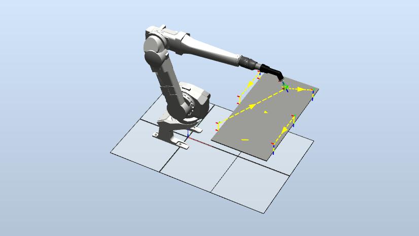 • ABB IRB 4600機器人從輸送線上吸取太陽能電池串,按特定順序放置到定位好的玻璃板EVA面上,完成排版。