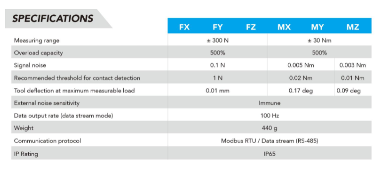 Robotiq 力矩傳感器的參數: