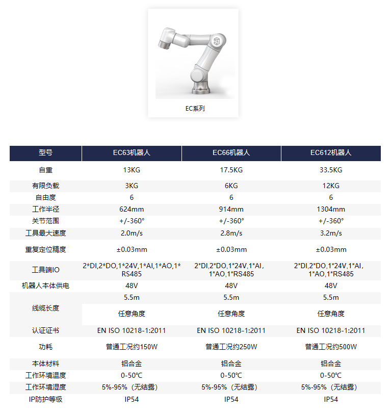 艾利特EC66協作機器人售后支持
