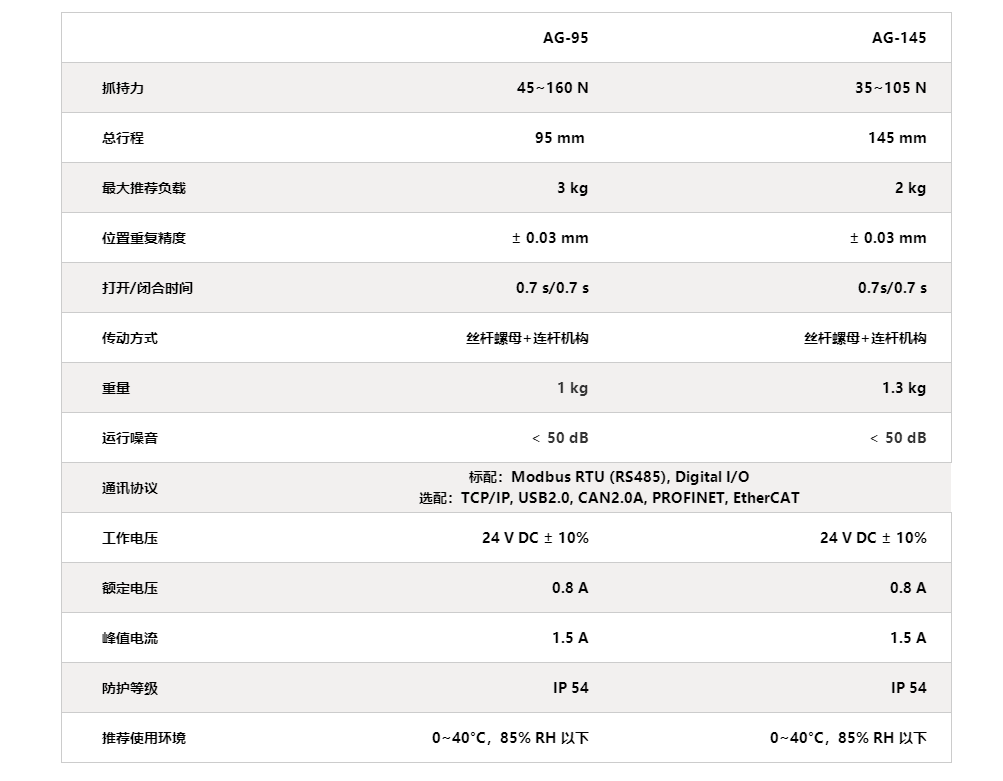 大寰AG系列夾爪參數: