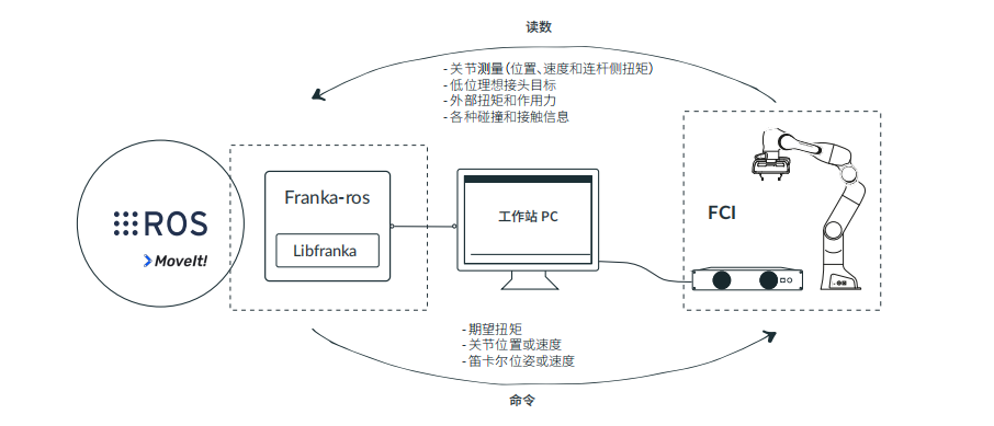 激活 FCI*,即可通過(guò)快速、直接的底層雙向通信將工作站 PC 連接到 FE Powertool 系統(tǒng)。這樣可以提供機(jī)器人的當(dāng)前狀態(tài)并對(duì)其實(shí)施直接控制 (1 kHz)。