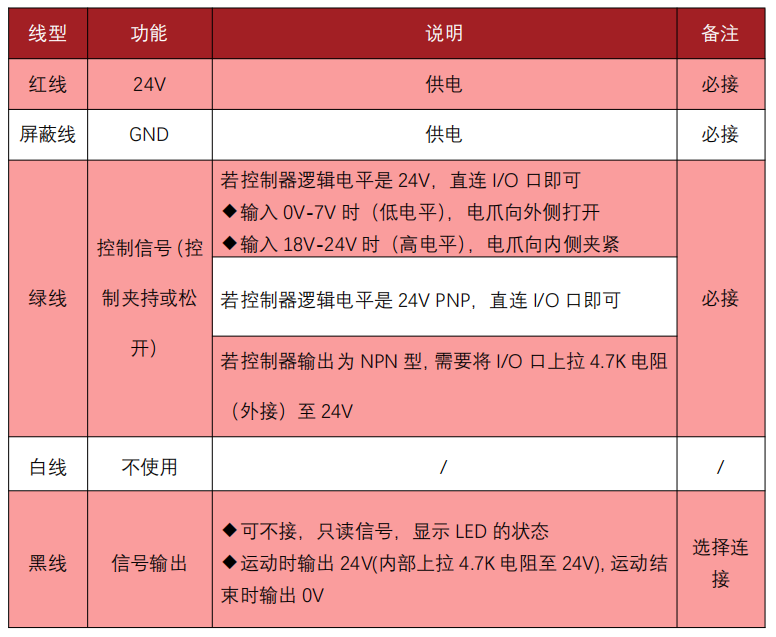 慧靈Z-EFG-F電爪線序說明 (PNP)