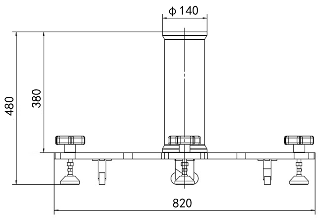底座帶有 4 個地腳螺栓和 4 個萬向輪,方便固定和移動。用戶需要固定機器人本體時,旋轉地腳螺栓上部,降下地腳螺栓;要移動機器人本體時,用工具(扳手)旋轉地腳螺栓下部螺母,升高地腳螺栓使底座萬向輪著地即可。