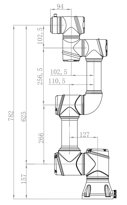 圖 AUBO-i3 機器人機械尺寸圖