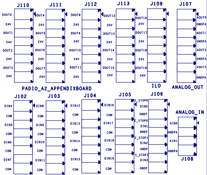 可配置I/O指的是數(shù)字輸入可以配置成NPN和PNP 兩種輸入模式,使用IO板上J22來 實(shí)現(xiàn)選擇。默認(rèn)為NPN輸入,即J22短路24V和中間端子;可以使用短路帽短路GNDP和 J22中間端子使得輸入配置為PNP模式。