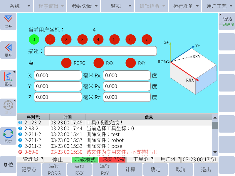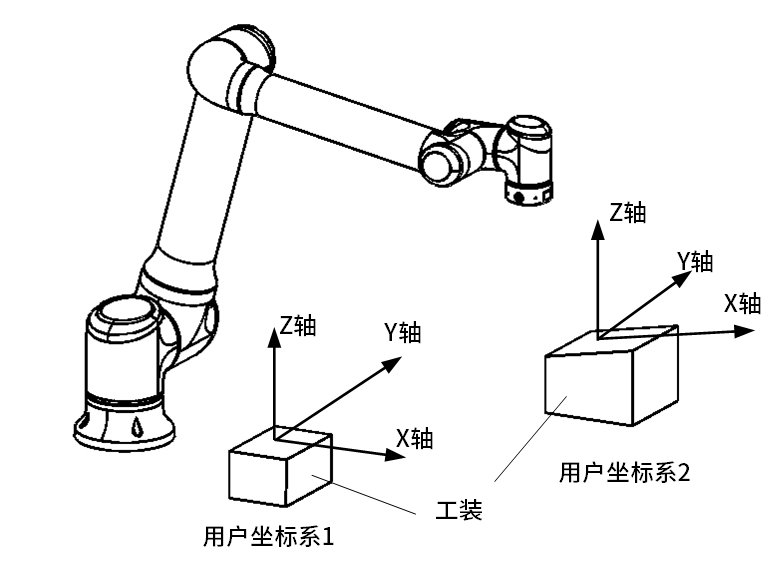 此外,艾利特協(xié)作機器人配有專用的可編程操作界面,用戶可通過此界面實時觀察機器人的運行狀態(tài),對機器人進行諸多控制設置,也可脫機進行離線仿真,極大地提升了實際應用的工作效率。建立艾利特機器人用戶坐標系,可以方便示教編程時使用。如圖1所示,有幾個工裝面就需要設置幾個用戶坐標系。