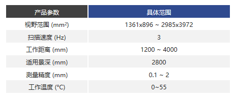 超大視野三維成像,大景深,毫米級精度,對反光塑料、軟包等材料三維成像效果好,抗環境光干擾,支持混合拆垛碼垛。