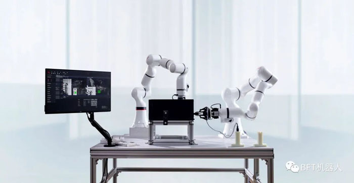 單臂協作機器人只有一條手臂,是機械臂中最常見的形式。由于布置靈活、控制簡單,廣泛應用于各種行業場景。雙臂協作機器人擁有更廣闊的動作空間,高效靈活,適用于需要交互協作的負載應用,或者在有限空間完成多動作的場景,如雙手擰瓶蓋的協同動作,與單臂機器人相比,雙臂協作機器人具有更高的靈活性和可操作性,可以完成單臂不能完成的任務。