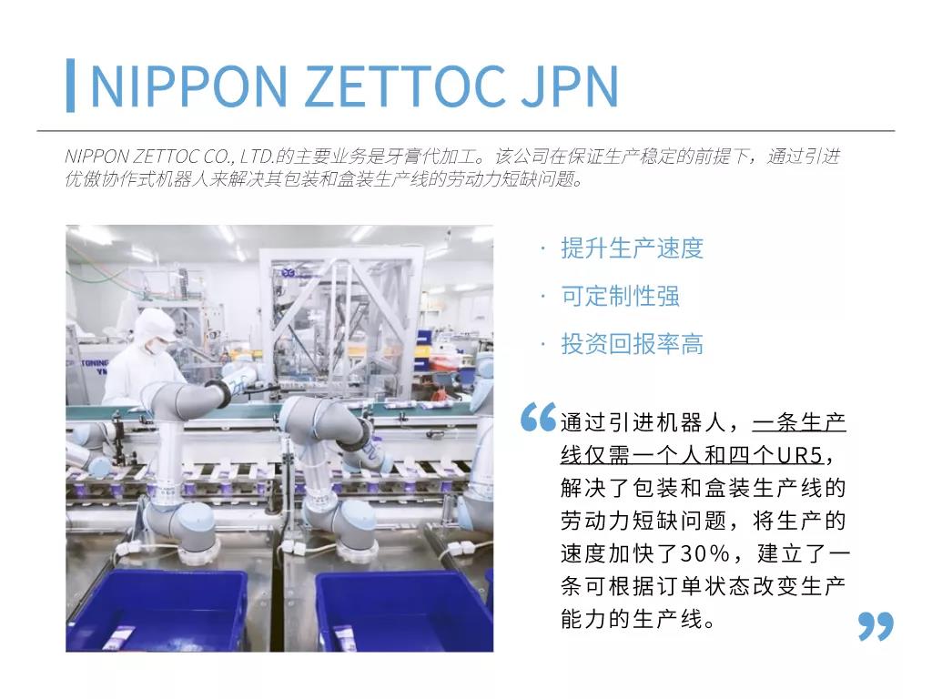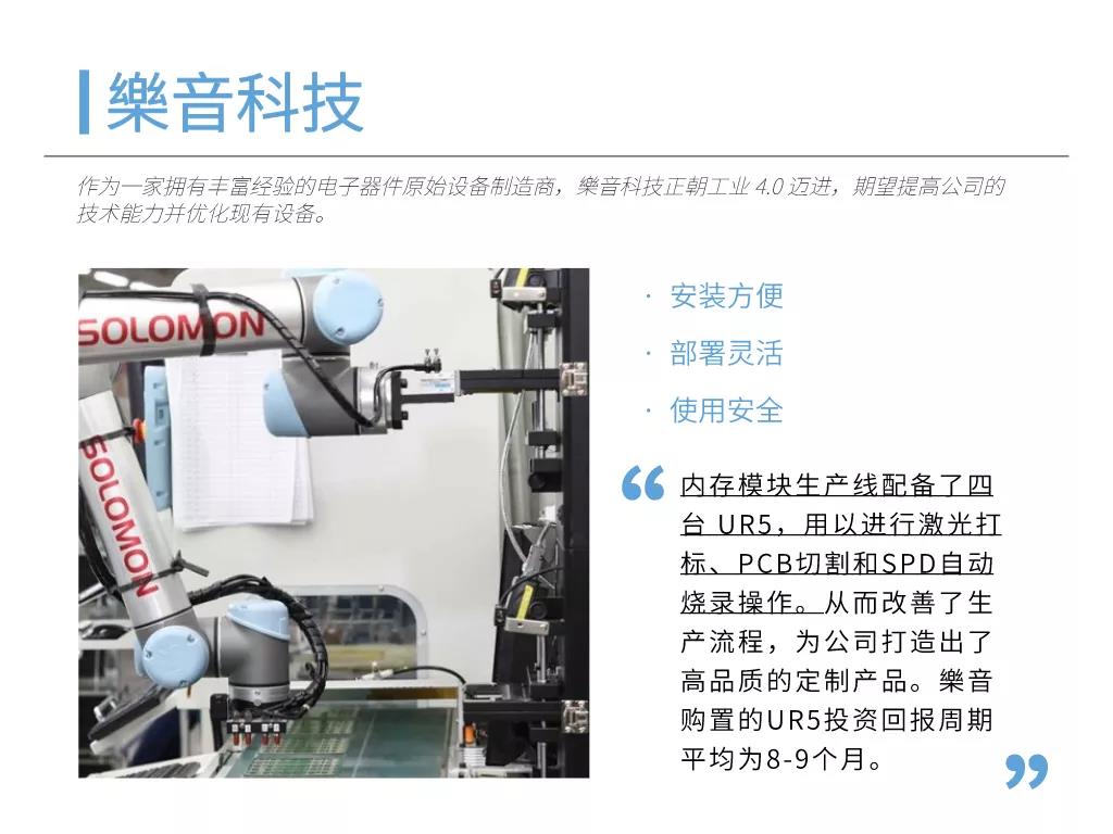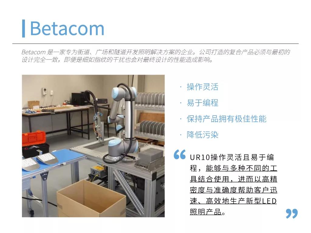 輕量化協作式機械臂可協助企業實現自動化的物料搬運流程,從而將工人從重復繁重的工作中解放出來。自動化流程不僅能夠降低產品的生產成本,縮短產品生命周期,還能緩解勞動力短缺問題,幫助企業輕松應對季節性高峰。