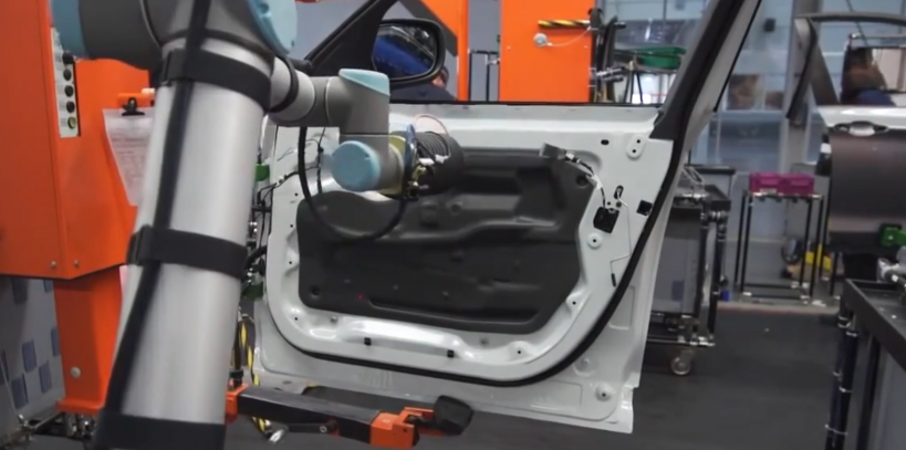 在汽車車門內飾板涂膠過程中,優傲機器人操作簡單靈活,采用多關節設計,無需對現有涂膠線做過多的調整,即可輕松融入到整個涂膠中。可以減少周期時間,提高產品質量,更加有利于提高產品對于市場需求的快速反應能力。使用協作機器人必將是未來汽車零部件涂膠的必然趨勢。
