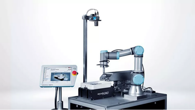 首先協作機器人構造緊湊,使得整個工件的占地面積十分小;此外在編程過程中運用了協作機器人自在拖拽功用,經過將機器人拖拽到想要的位置,并進一步精調路點,使得編程效率更高;與這套應用對接的工料機能夠選擇自動排料機構(當然很多場景下也能夠運用固定位置供料的方式)。在實踐的案例中,優傲曾經有客戶運用UR10機器人倒裝停止相似的擰螺絲(M3)應用。