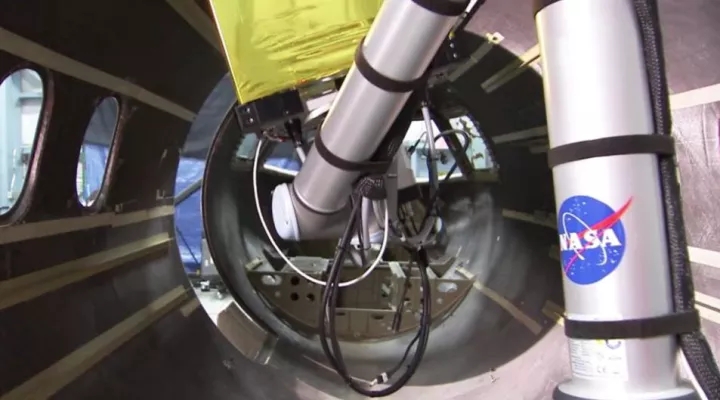 NASA配備了一臺協作式機器人,以及一個正在對機身內部進行檢查的紅外線檢測系統。協作式機器人與常規機器人略有不同,區別在于其具有內置的各項安全性能,這樣就使得研究人員可以靠近檢測工具協同工作,在進行檢查時無需再設置保護區域禁止人員進入。這種人機協同作業帶來的改變是,NASA的工作人員可以在飛機上同時開展多項工作,無論是使用多個協作機器人,或者在進行檢測時在飛機上進行其他作業。