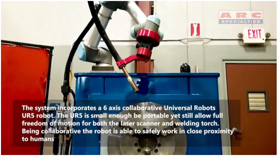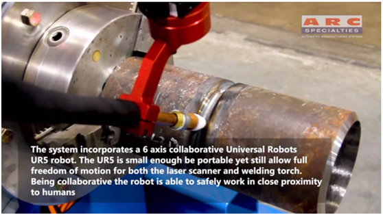 人工智能管道焊接系統(tǒng)(AIPW)采用了優(yōu)傲機(jī)器人的的6軸UR5協(xié)作機(jī)器人手臂來完成具有挑戰(zhàn)性的焊接。 “UR5協(xié)作機(jī)器人現(xiàn)在成為了我們的'金臂',”Allford說。 “UR5協(xié)作機(jī)器人足夠小,便于移動,但仍然可以為激光掃描儀和焊槍提供完全的運(yùn)動自由度。協(xié)作機(jī)器人能夠安全地在人類附近工作。”
