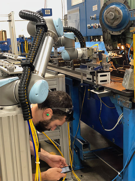 Hirebotics 本質上是一家面向制造商的臨時工服務中介機構,但該公司選擇采用優傲協作機器人解決生產挑戰。它所采用的系統是包括機器人、工裝和集成在內的全套交鑰匙系統,因此即便公司對機器人一無所知,它們也可以使用協作機器人。但 Hirebotics 能夠提供更多服務。Hirebotics 采用了一款可以提供機器人數據的應用程序,該應用程序能夠跟蹤生產率并在機器人需要更多零件或更換工具等情況下發送推送通知,這一點是其服務的重要組成部分。