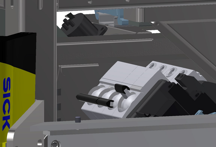 3. 打開放置在角落處鄰近前部激光掃描儀的三個繼電器。從32 A 主電源開始,即從外框向內進行。