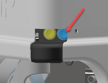 8. 按下角落處的藍色電源按鈕,以啟動機器人。機器人短暫亮起黃色運行燈,隨后進入急停模式,紅色燈常亮。