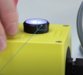 9. 在其亮起后,按下急停上的重置按鈕。機器人燈現已切換為黃色燈常亮。這表示機器人已暫停并且已準備好運行。