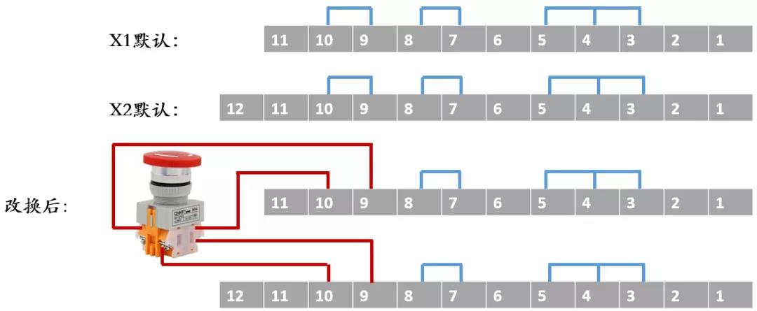 安全板上有4排端子,分別是X5、X6、X1、X2下面來看一下各種停止方式是如何接線: