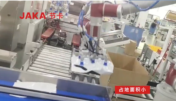 通過在生產后段包裝線上部署JAKAZu 12協作機器人,與現有設備無縫銜接,替換復雜空間抓取裝箱結構,實現了產品的高效裝箱,單次動作最快達到2s。