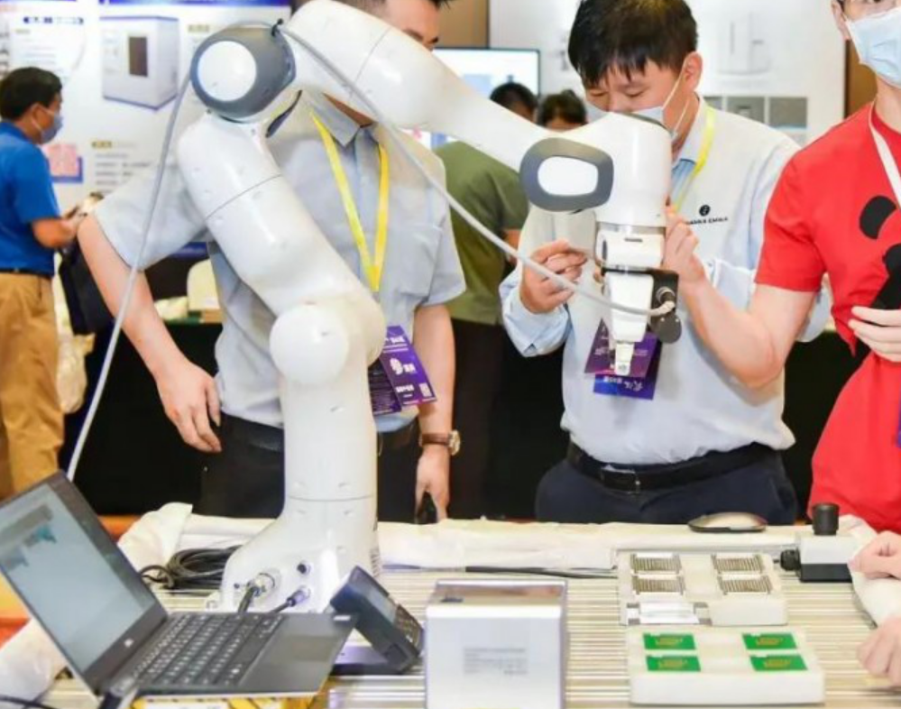 演講的間隙,參會嘉賓們來到了本次活動的產(chǎn)品展示區(qū),并與來自國際和國內(nèi)的知名產(chǎn)品和服務(wù)提供商代表進(jìn)行了近距離溝通。交流期間,F(xiàn)ranka展區(qū)人頭攢動。工程師們親自上陣并動手體驗了我們的Franak力控協(xié)作機(jī)器人,紛紛夸贊。