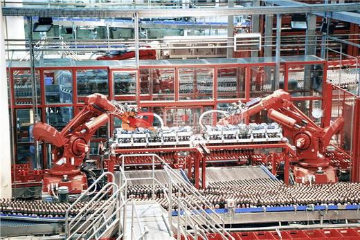 “生產線上的六臺abb翻新機器人IRB6400是最初應用于汽車工業(yè)的橙色工業(yè)機器人。其中有四臺機器人負責開啟空瓶,另外兩臺則利用拾放程序將啤酒裝進入塑料箱。這些機器人能夠從各種回收瓶中挑出自己品牌的瓶子。”